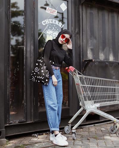 Inspirasi ootd hijab celana jeans kulot trend ootd.